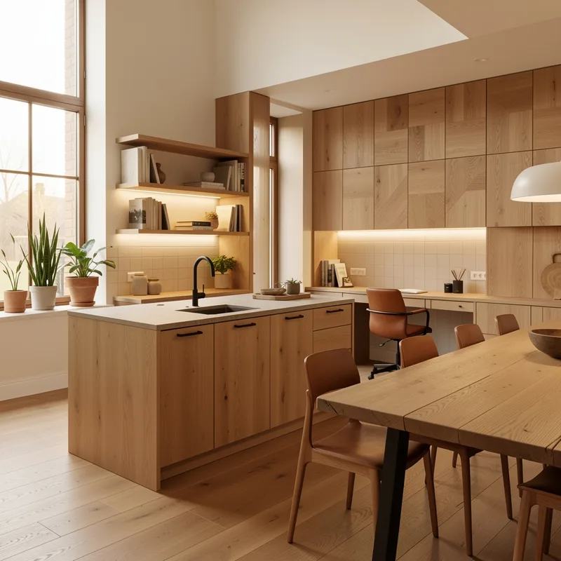 | Cuisine intégrée | 8 à 12 m² | 5 000 – 15 000 | Contreplaqué, mélaminé, bois massif |